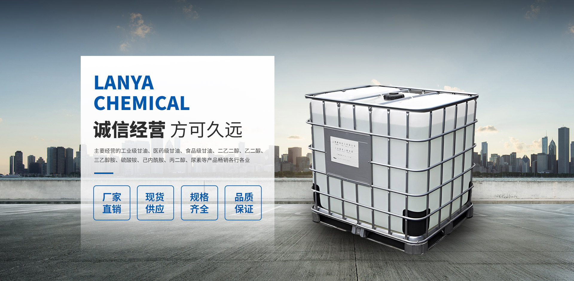 主要經(jīng)營的工業(yè)級(jí)甘油、醫(yī)藥級(jí)甘油、食品級(jí)甘油、二乙二醇、乙二醇、三乙醇胺、硫酸銨、己內(nèi)酰胺、丙二醇、尿素等產(chǎn)品。